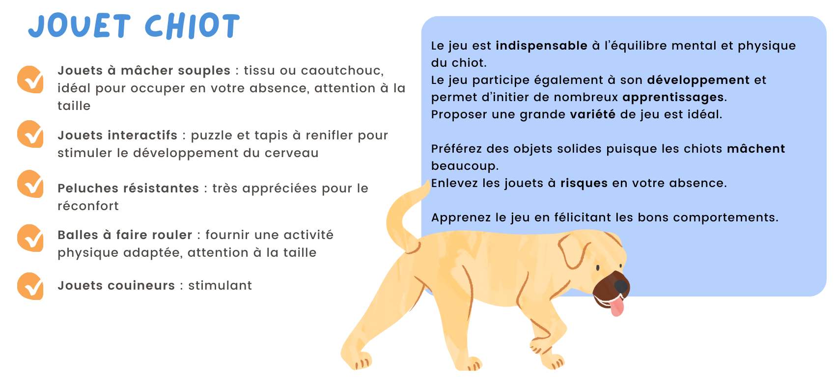 Il est également important de choisir des jouets sûrs, non toxiques et adaptés à la taille de la mâchoire de votre fidèle compagnon.
